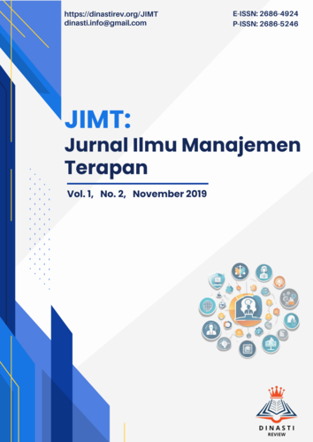 JIMT merupakan jurnal penelitian manajemen diterbitkan sejak tahun 2019 oleh Dinasti Review dibawah naungan Yayasan Dharma Indonesia Tercinta (DINASTI) dan Universitas Winaya Mukti (UNWIM) Bandung. Jurnal ini bertujuan untuk menyebarluaskan hasil penelitian kepada para akademisi, praktisi, mahasiswa, dan pihak lain yang berminat di bidang manajemen yang meliputi manajemen keuangan, manajemen pemasaran, manajemen operasional, manajemen sumber daya manusia, manajemen pengetahuan, manajemen inovasi, dll.